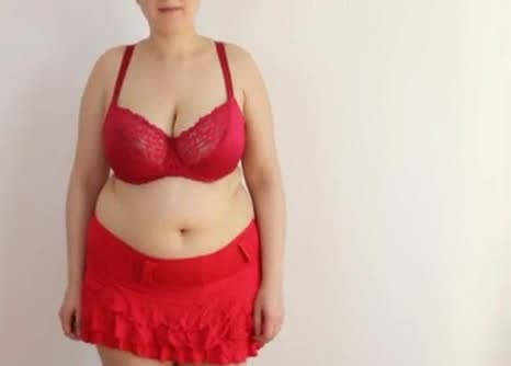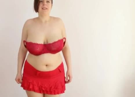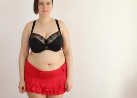 Пышка примеряет перед веб камерой новые бюстгальтера