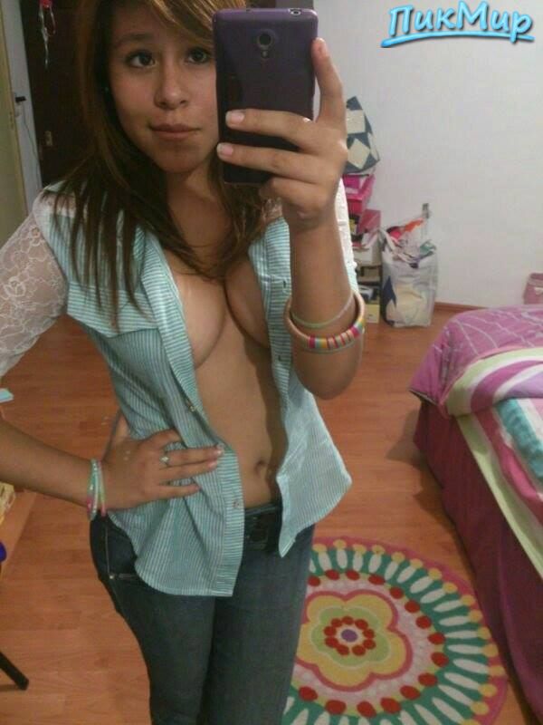 Приятное телосложение. И как она интересно косит в телефон глазом, чтобы смотреть, как она выглядит.