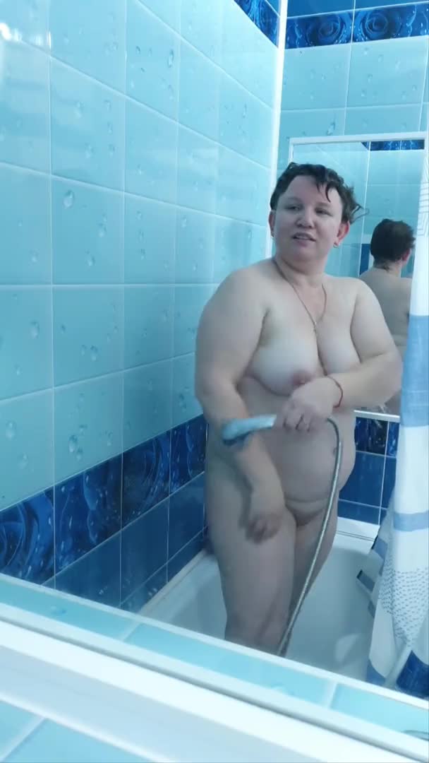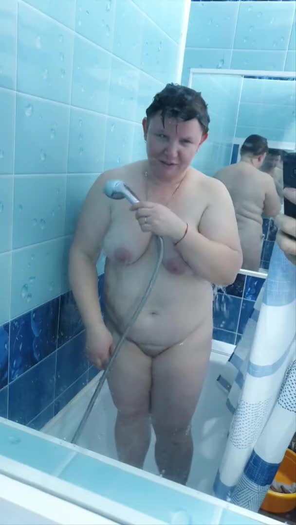 Муженёк не теряя времени заснял видосик как его пышная супруга моется в душе и выложил в сеть