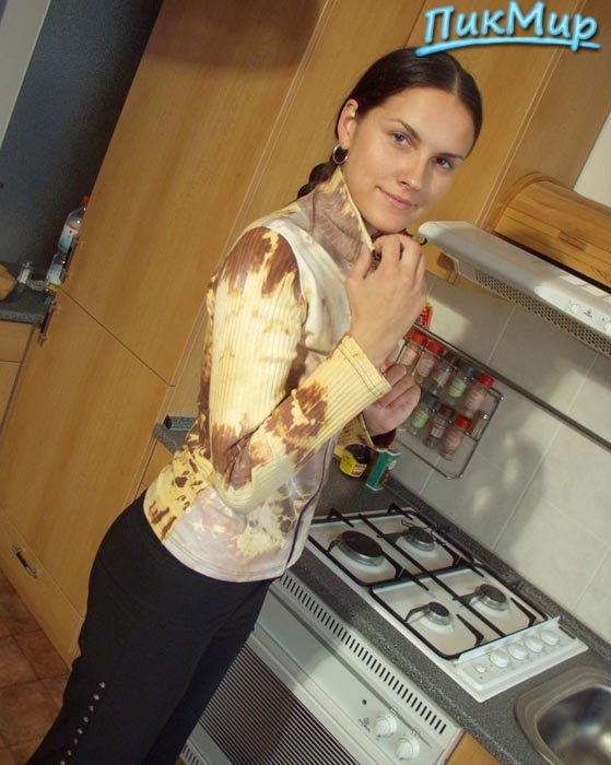 Приятно девочка приготовила своё тело к просмотру на кухне.