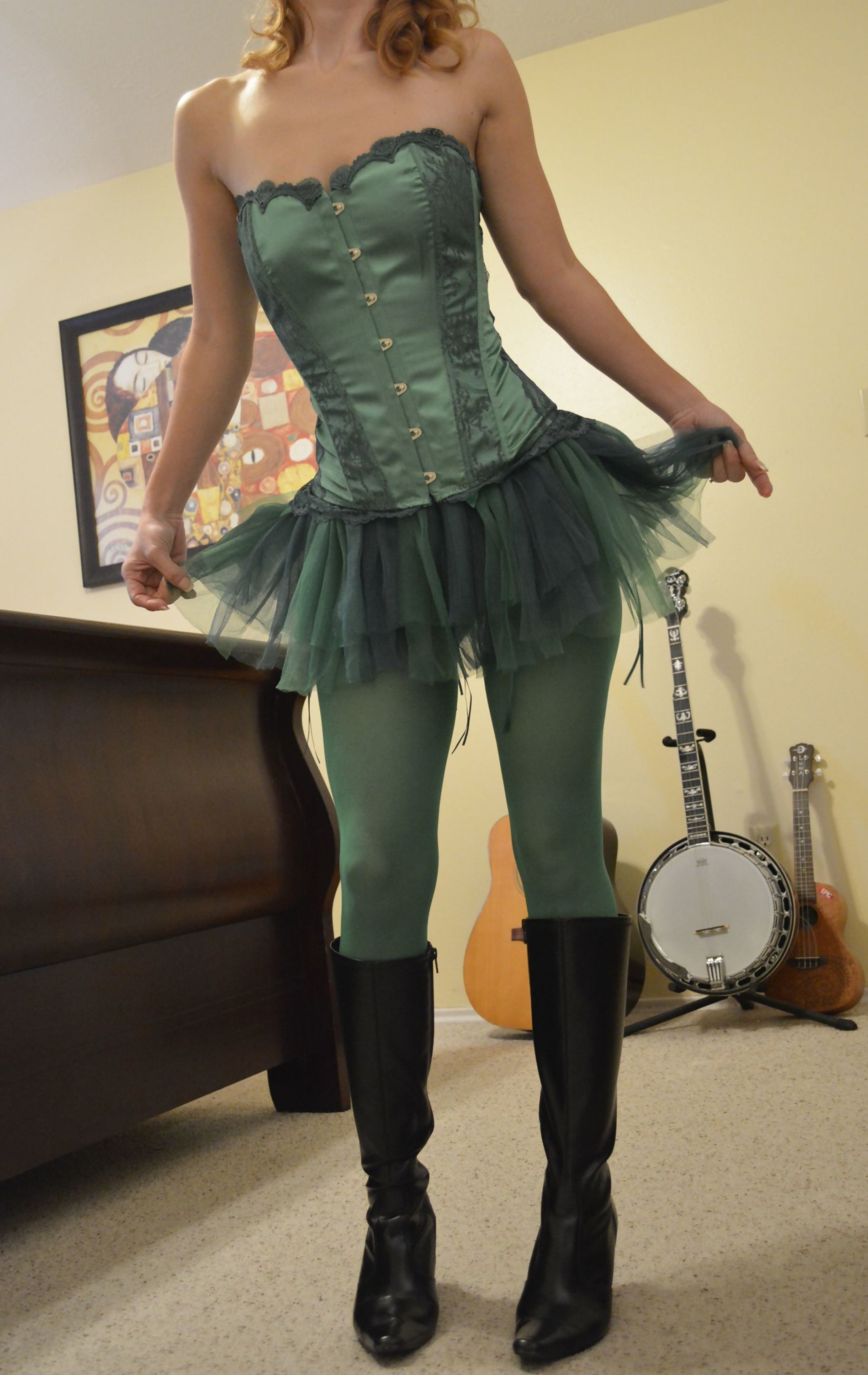 Она прекрасна в костюме лесной Феи, от природы у неё прекрасная фигура и соблазнительные прелести