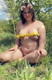 Импозантная дамочка поддалась первому тёплому солнышку и разделась на зелёной лужайке