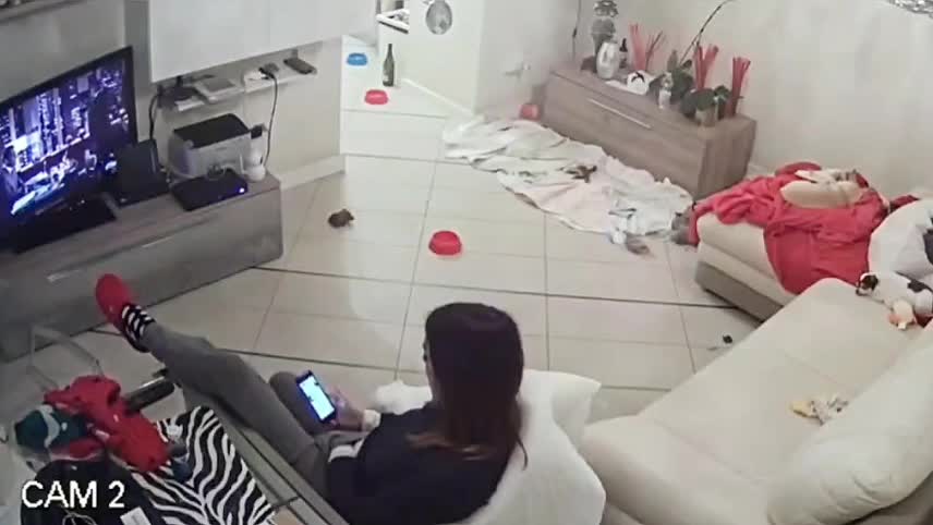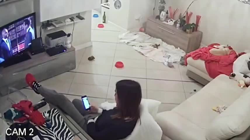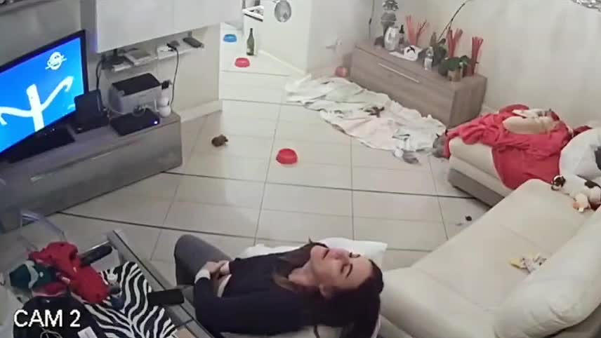 Девка сидит перед телеком и тихонько теребунькает писюху, не снимая штанишек!