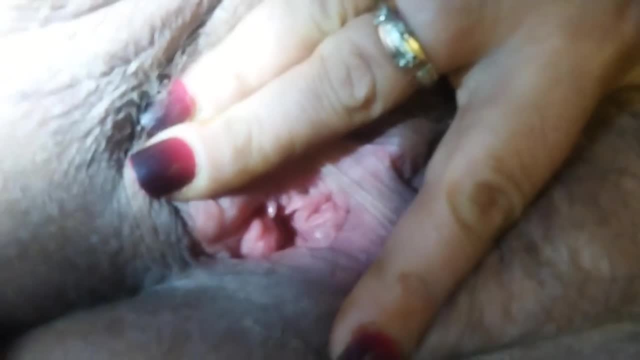 Женщина в возрасте снимает свою мастурбацию небритой киски игрушкой крупным планом!