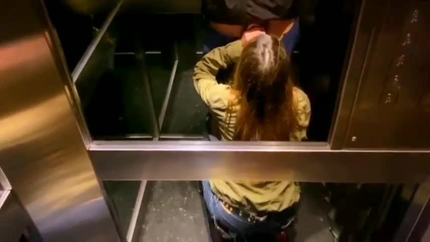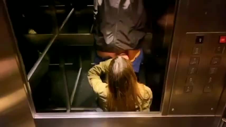 Девчонка сосет парню в лифте, а тот снимает это на телефон.