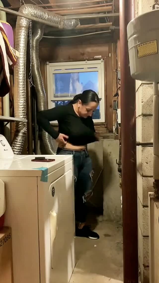 Мужик ремонтник засаживает хозяйке в какой-то подсобке.