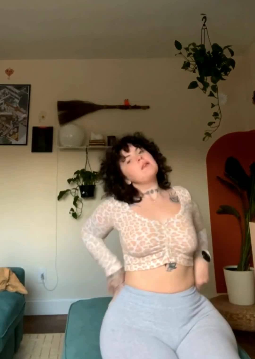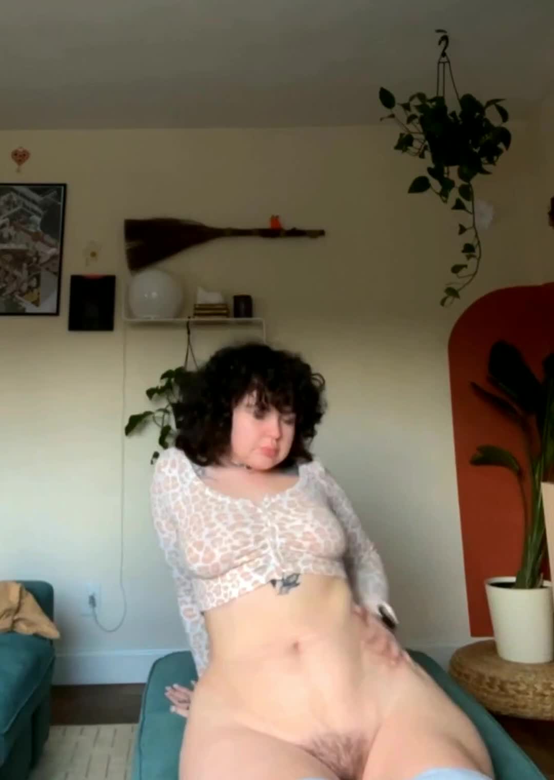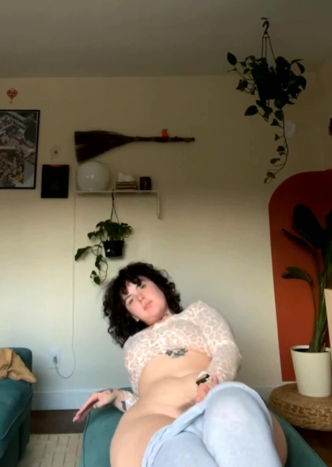 Кучерявая деваха снимает штанишки и показывает свою жеппу!