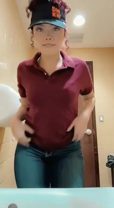 Девчонка зашла в туалет и показала свои прелести, большей частью жеппу!