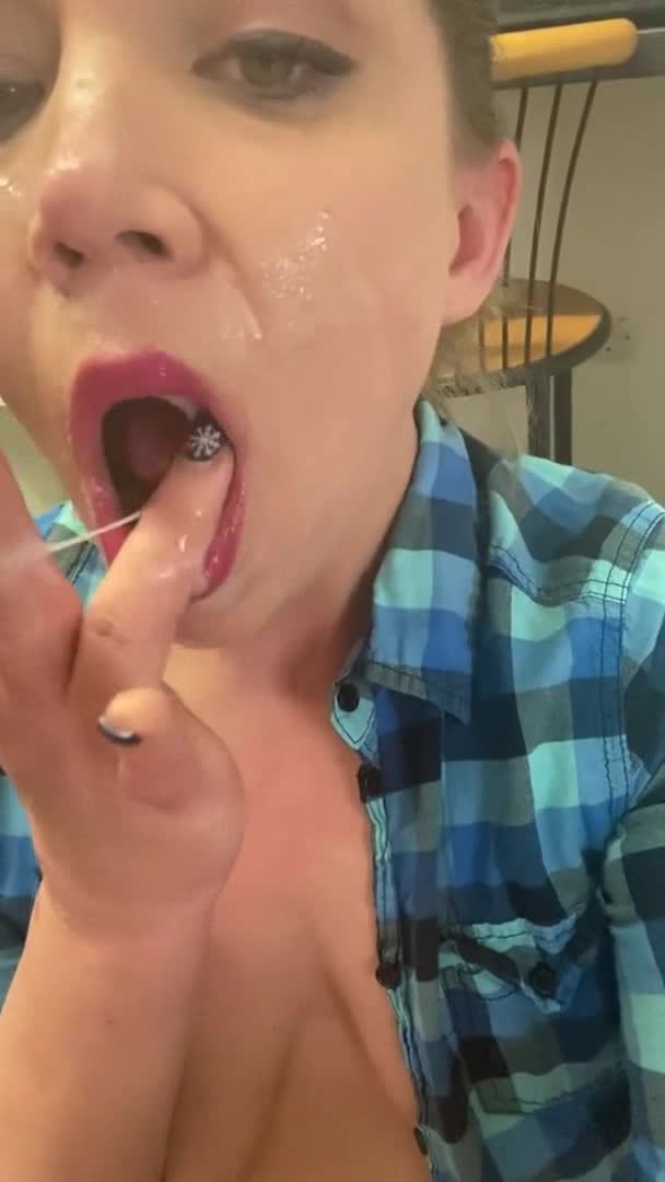 Блондинку отсосала по-быстрому на кухне и получила хорошую порцию спермы на лицо.