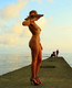 Женщина гуляет по пирсу