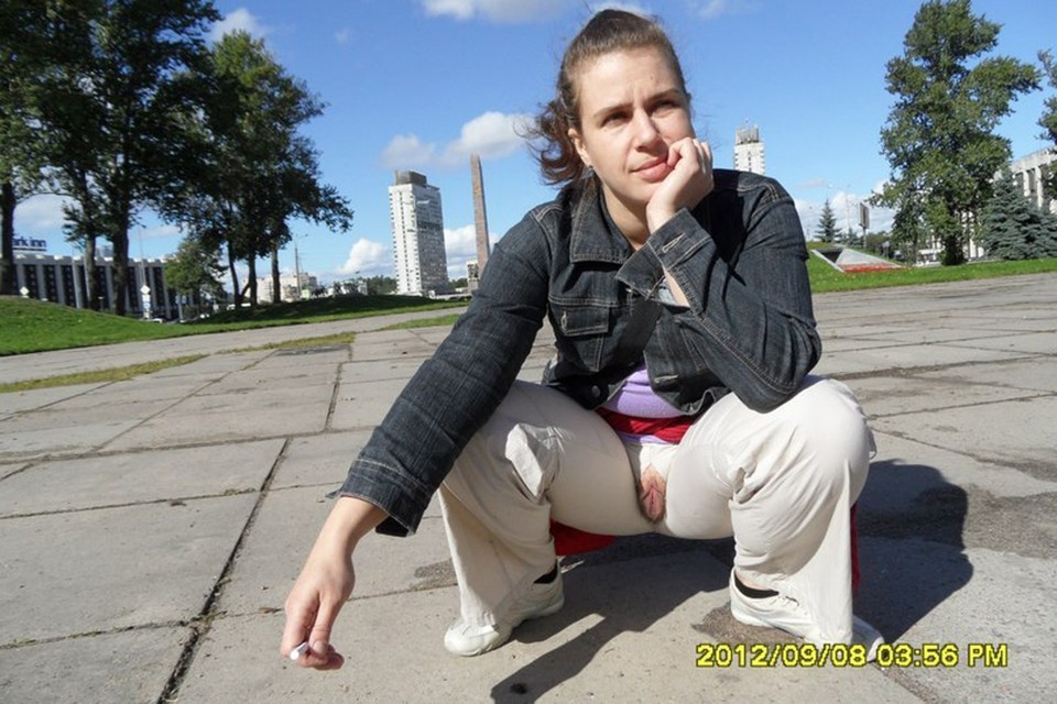На первых 2 фото, аппетитно торчит мохнатка, так и хочется полирнуть языком. На последней, не ужели она так по улицам ходила? При чем прилюдно... Ну и заморозит же манюню свою.