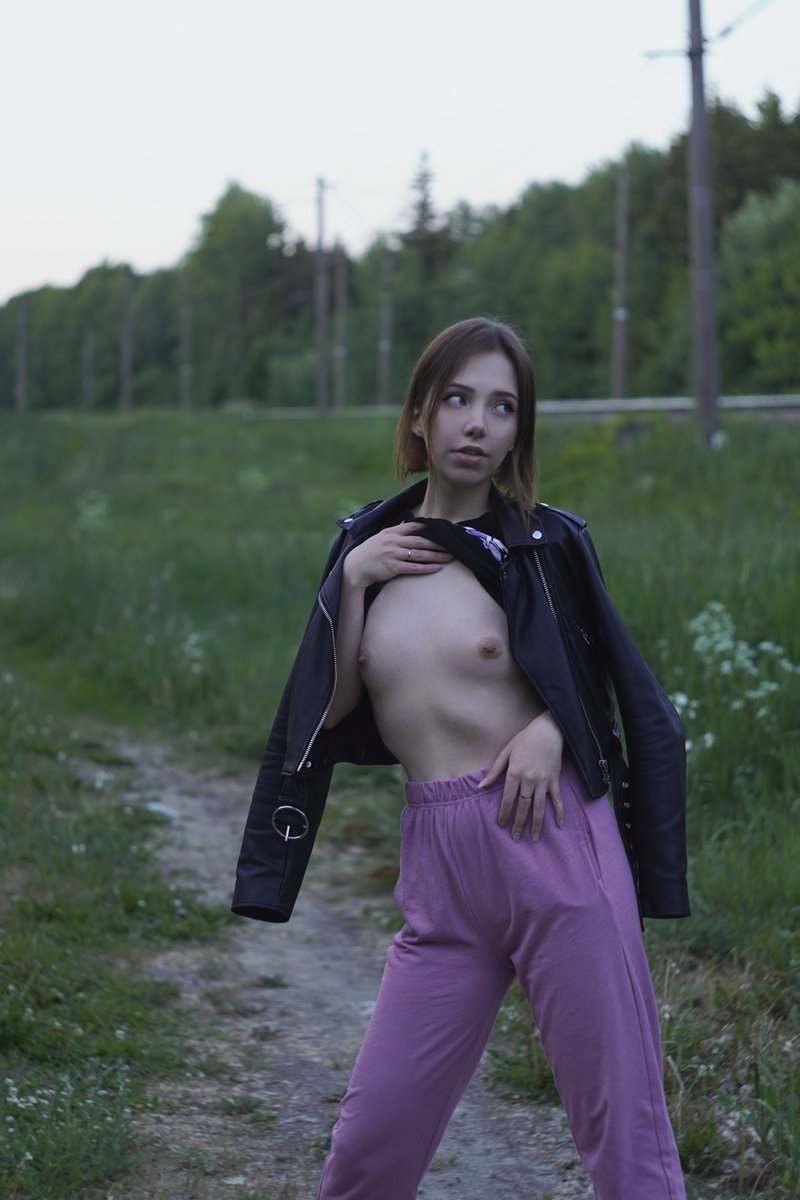 Замужняя шлюшка показывает свою плоскую грудь - очень интересно!