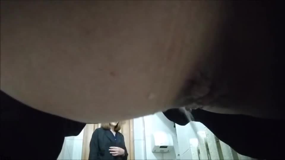 Две женщины зашли пописать в туалет,где их сняла скрытая камера.
