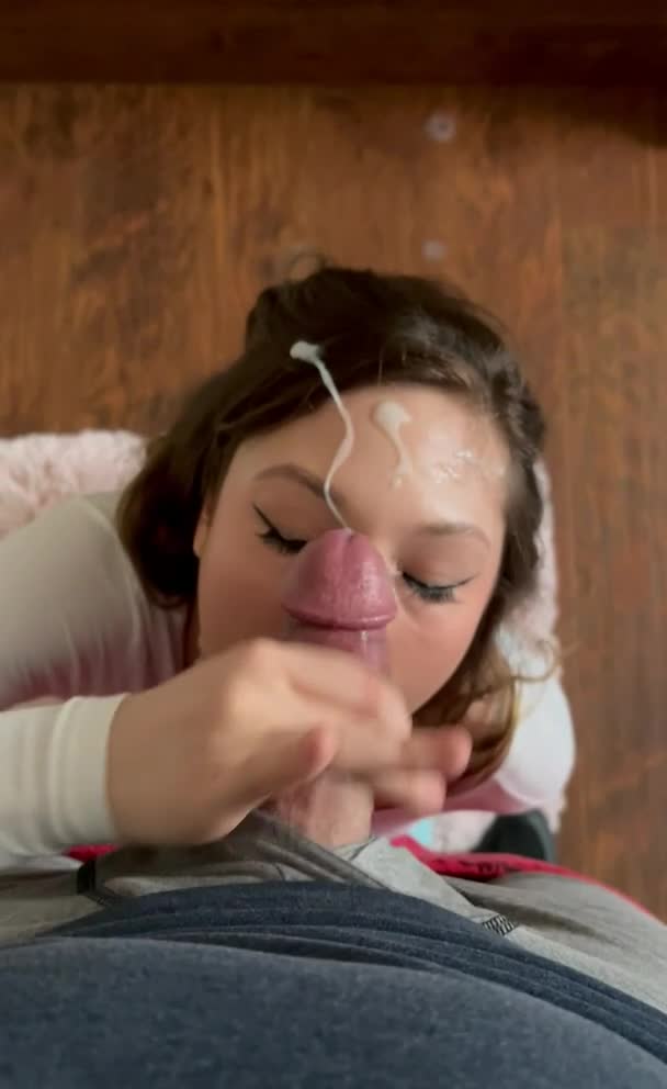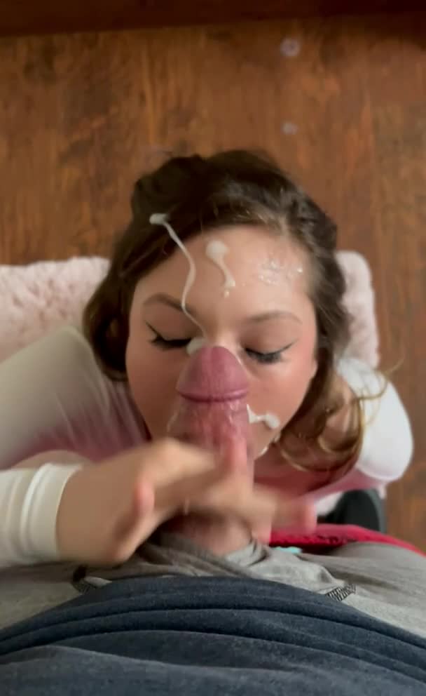 Сперма на лице девицы, которая любит когда кончают прямо на неё.