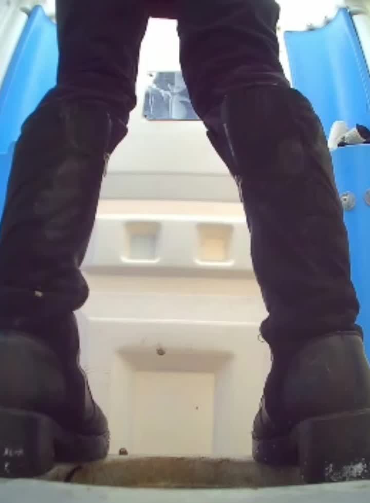 Женщина зашла покакать в биотуалет,где ее сняла скрытая камера.