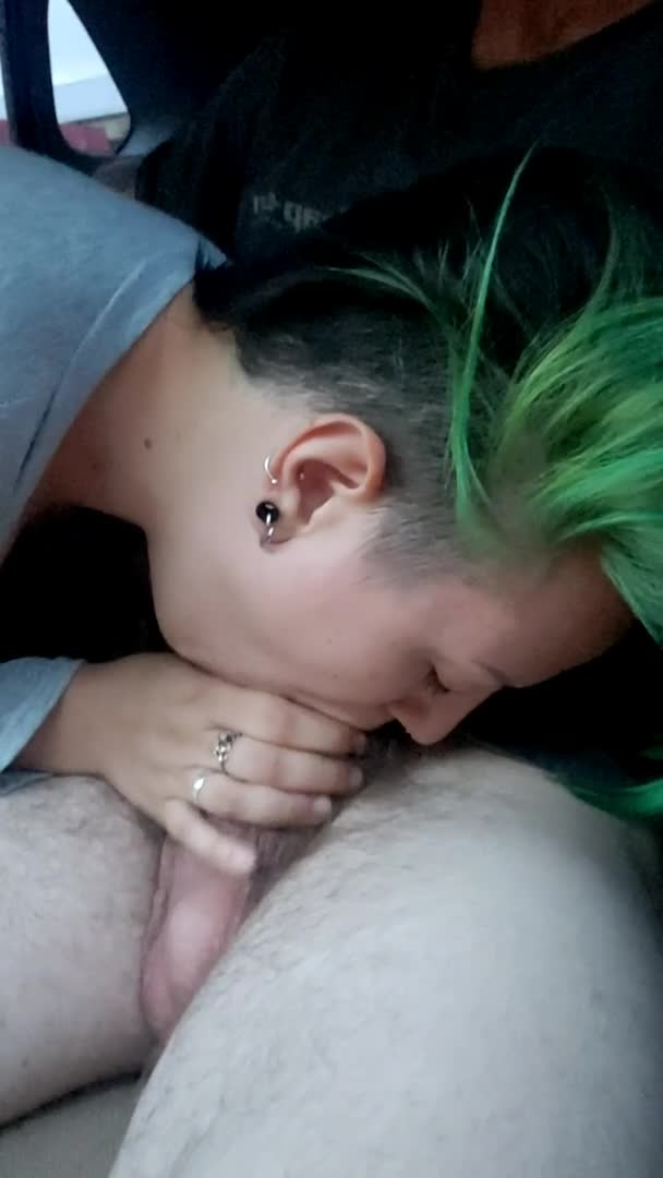Неформалка с зелеными волосами сосёт хуй