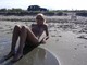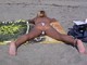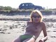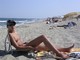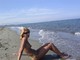 Дамочка загорает на пляже в трусиках