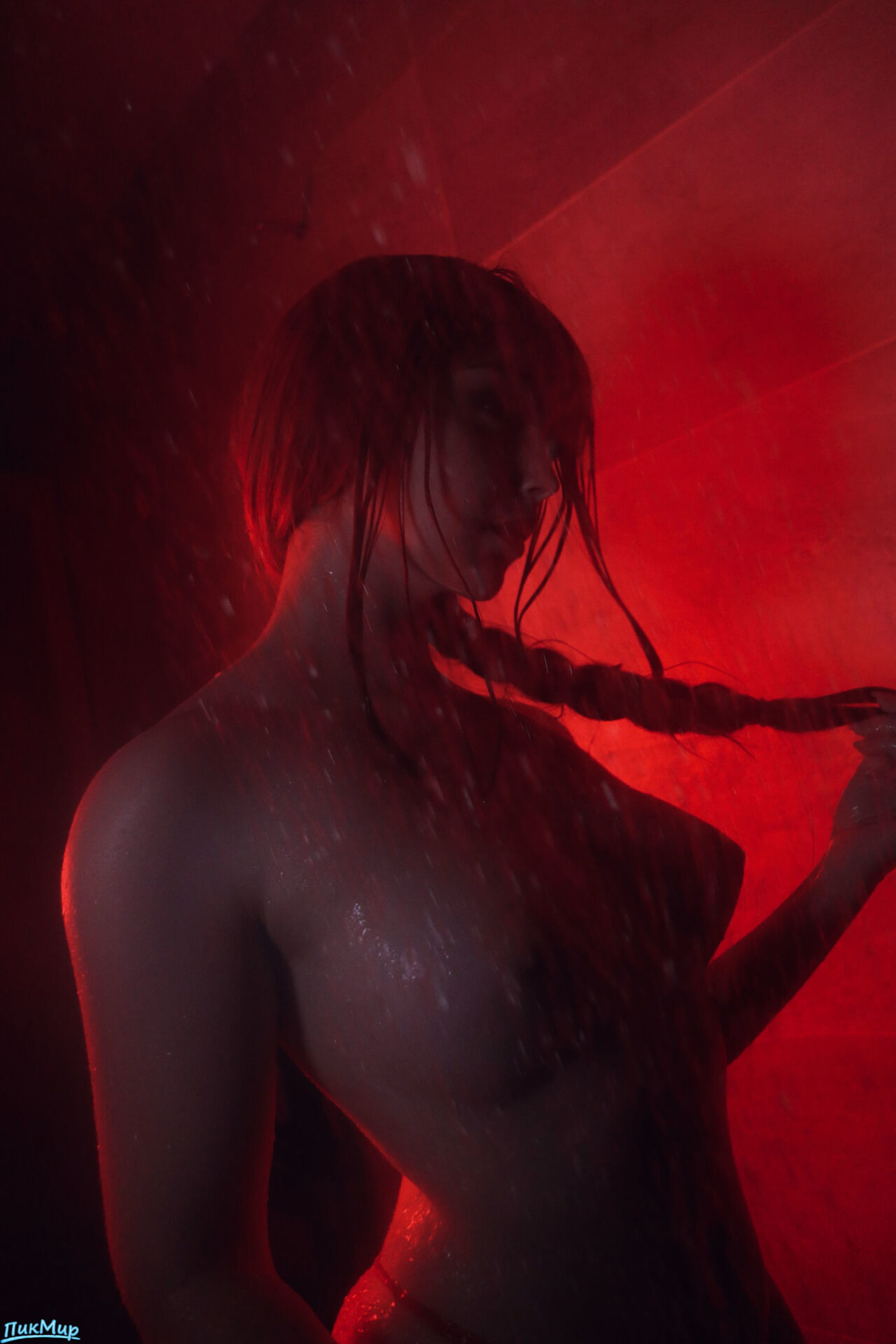 Стройная девочка устроила фото сессию в ванне при эротичном освещении