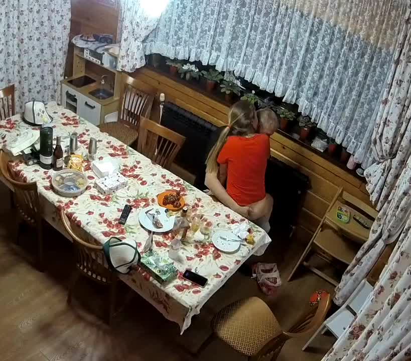 Парочка дождалась когда разойдутся гости и предалась плотским утехам за столом и на столе.