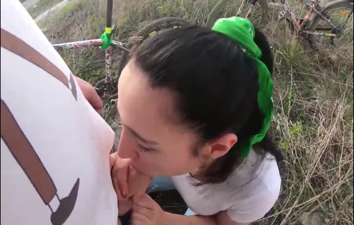 Договорились о велосипедной прогулке и сначала тёлка отсосала своему попутчику, спрятавшись за гаражами.