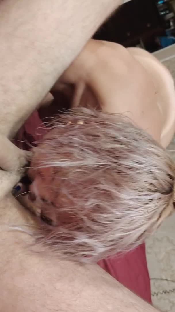 Зрелая неугомонная жена жадно делает минет мужу и облизывает яички!