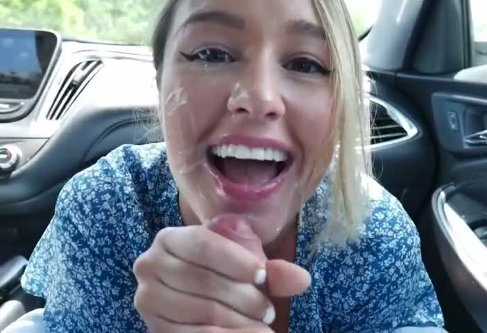 кончает проститутке прямо в рот и её симпатичное лицо прямо у себя в машине