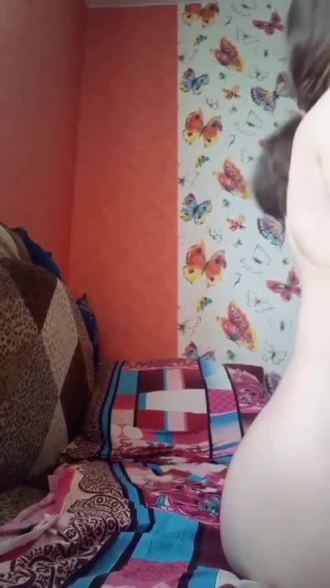 Совершеннолетняя миленькая девчуля разделась дома показав свои девичьи прелести