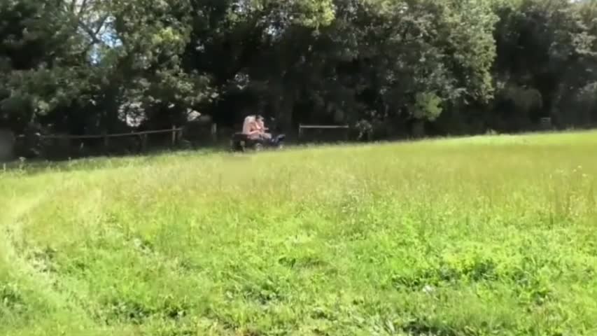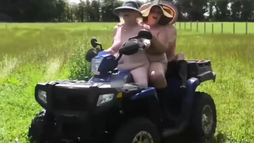 Бабушки в шляпах голышом гоняют на квадрике по полю