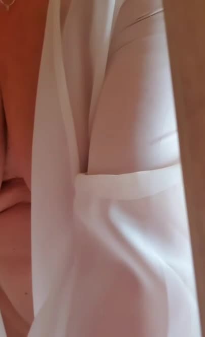 Соблазнительная зрелая дамочка в пеньюаре позирует на камеру. Прелести у нее шикарные.