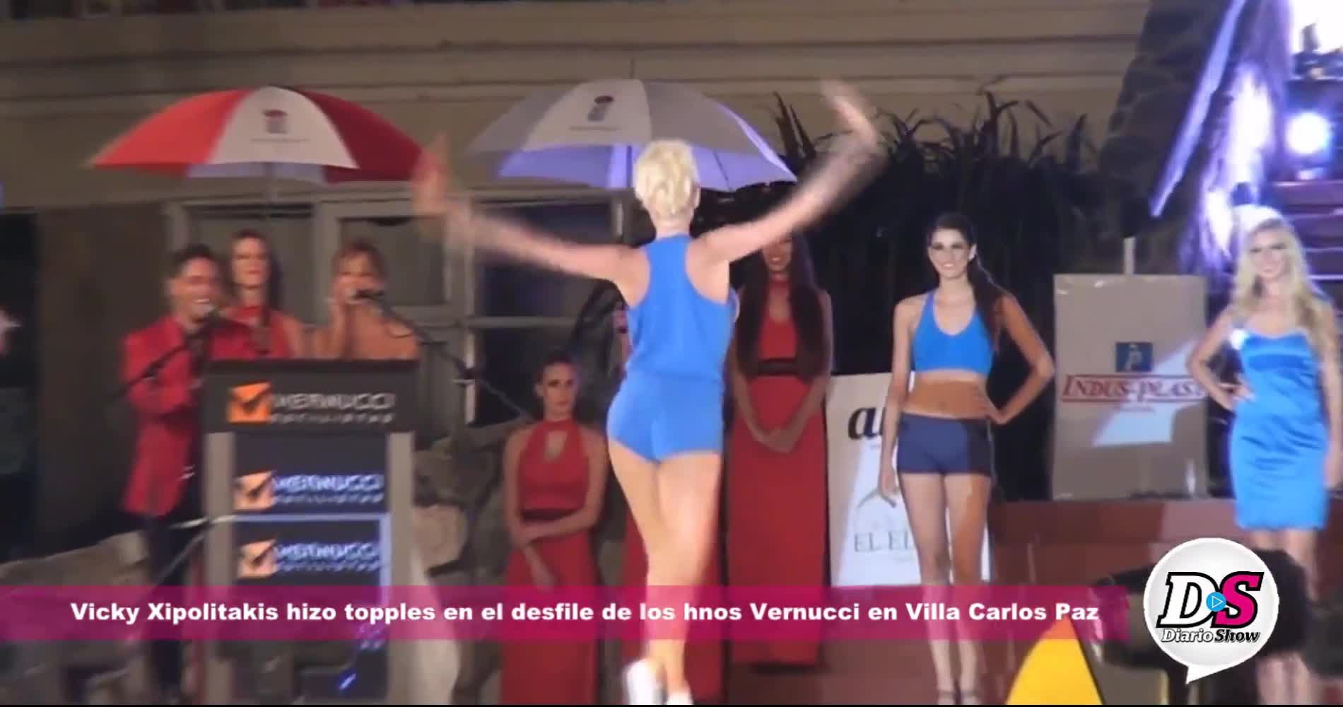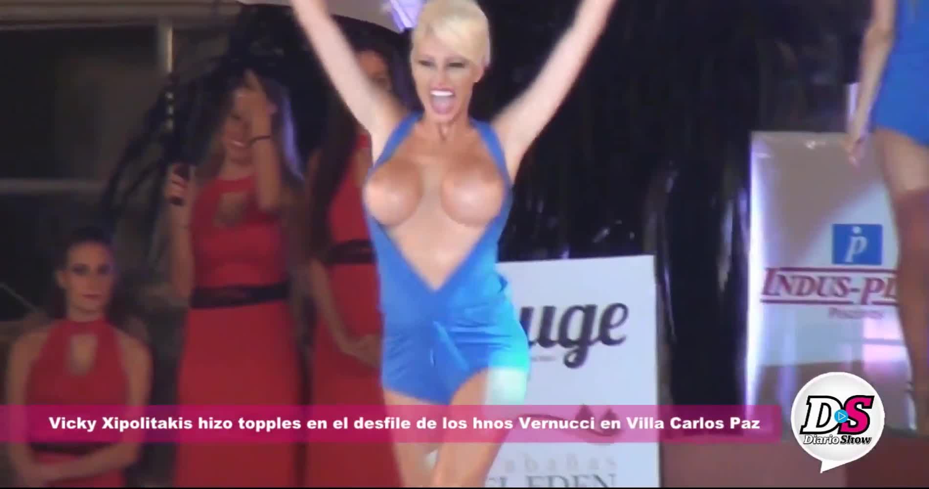 У блондинки-участницы конкурса красоты грудь торчит из платья во время прямого эфира на телевидении. Но девушка воспринимает ситуацию с юмором, и все операторы снимают только ее.