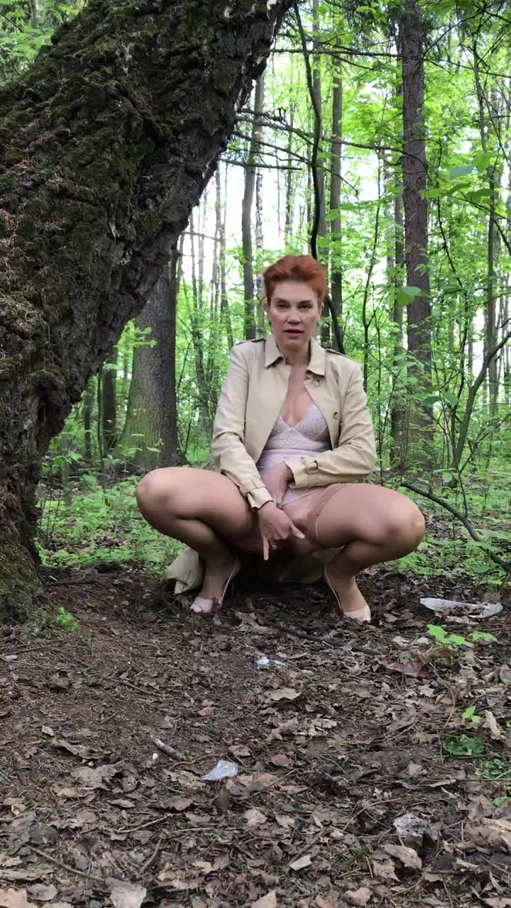 красивая дама в эротическом белье мастурбирует в лесу