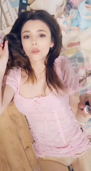 девушка показывает лёжа свою киску снимая на селфи палку