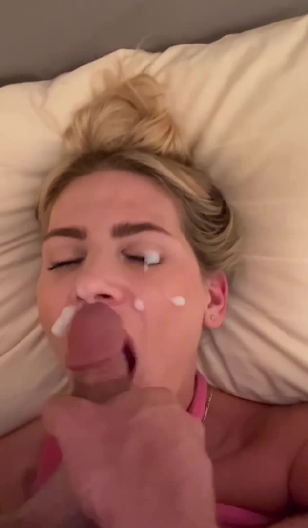 Кончил на белобрысую шлюху, которая ему отсосала.