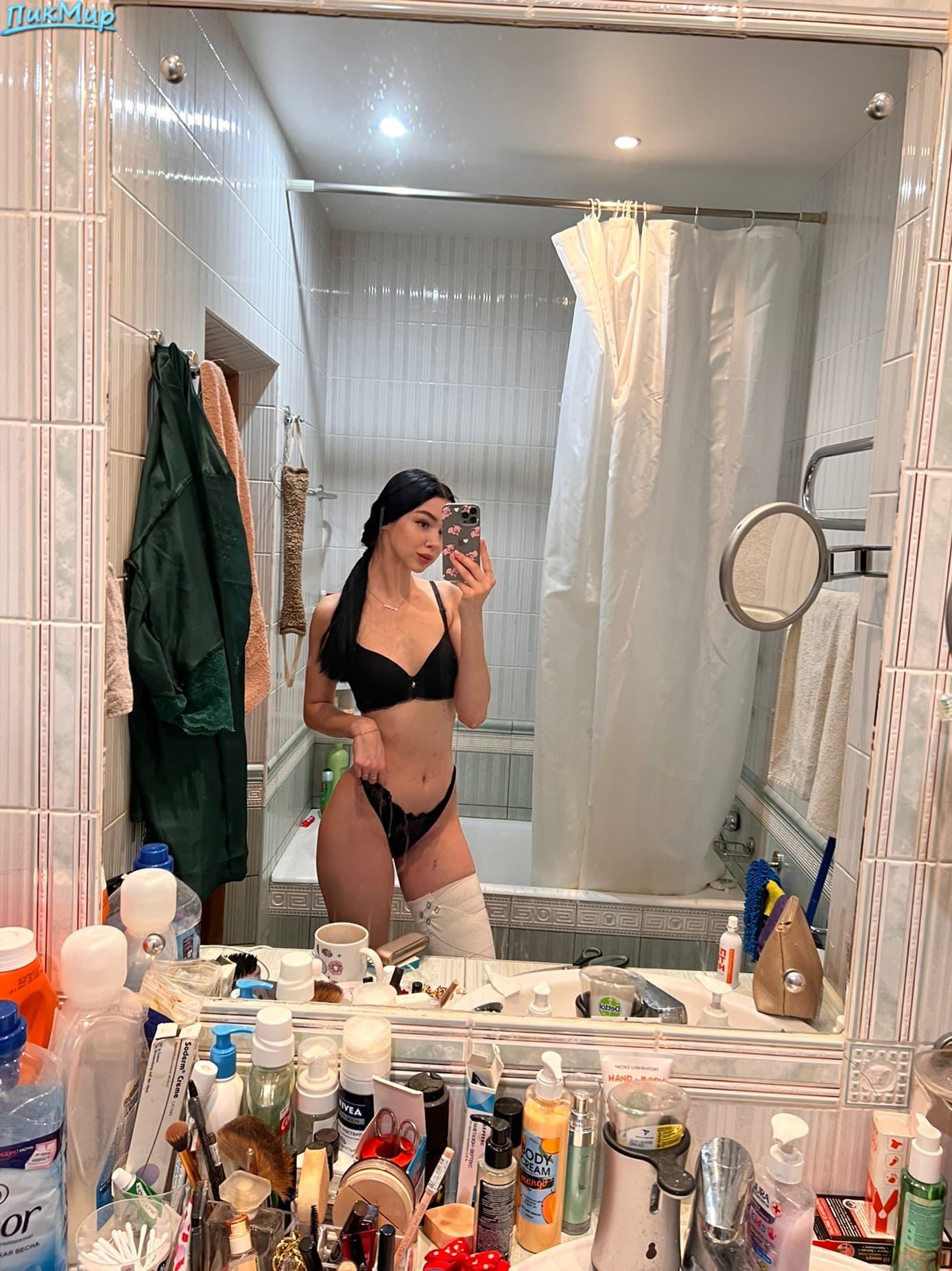 селфи снимки одной красотки в большом зеркале