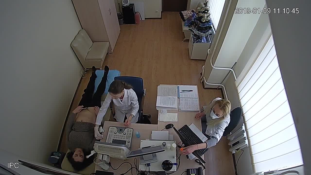 Скрытая камера установленная в кабинете женского врача снимает обследование внутренних половых органов женщин пациенток.