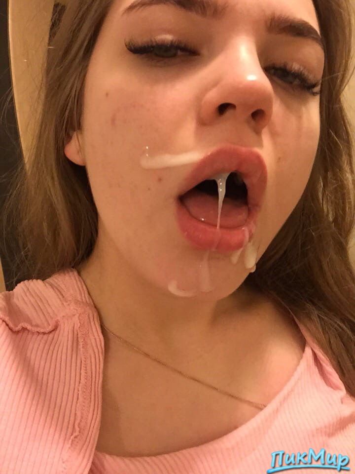 шлюха любит фоткаться со спермой от разных минетов на своём лице