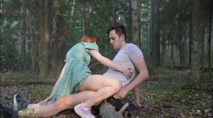 Хороший секс на природе, с сочным окончанием в ротик из толстого члена