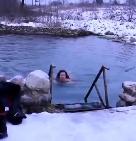 Обычно так купаются, когда из баньки. И в баньку. А тело-то у неё клёвое.