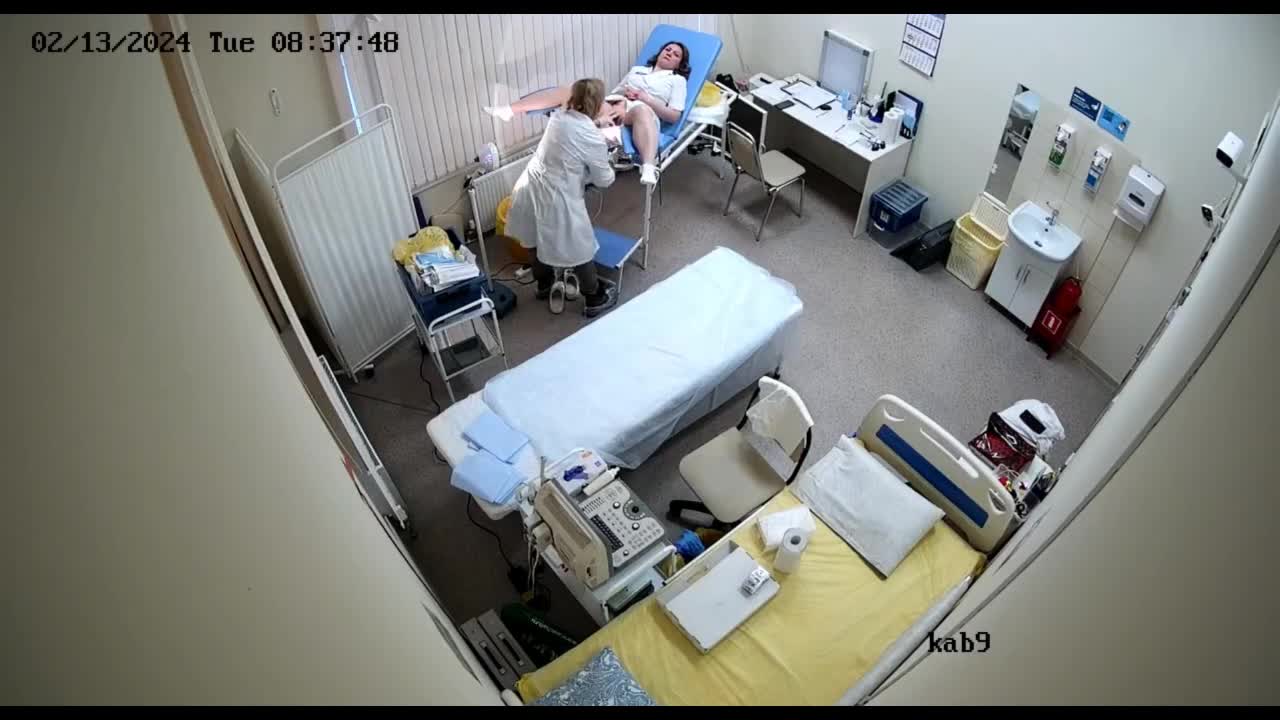 Доктор осматривает молодую медсестру сначала на гинекологическом кресле а затем делает ей вагинальное узи.