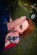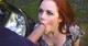 рыжая девушка принимает большой член в рот на природе