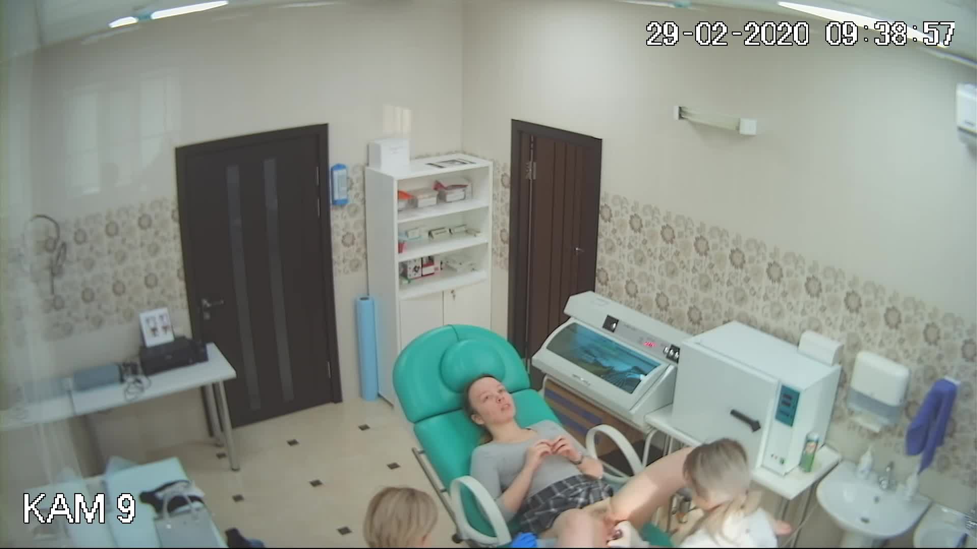 Скрытая камера в кабинете поликлиники фиксирует взятие мазков из влагалища молодой женщины.