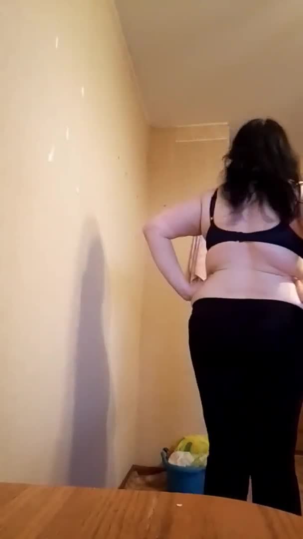 Пышная дамочка ни чуть не стесняясь свое полноты выдала стриптиз с показом своих пышностей