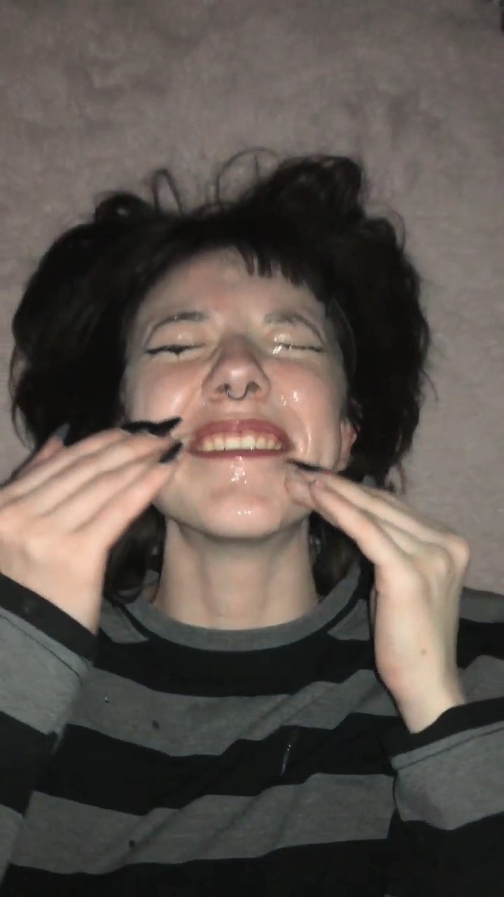 девка с жадностью отсасывает, смеётся и в это время в её лицо летит сперма