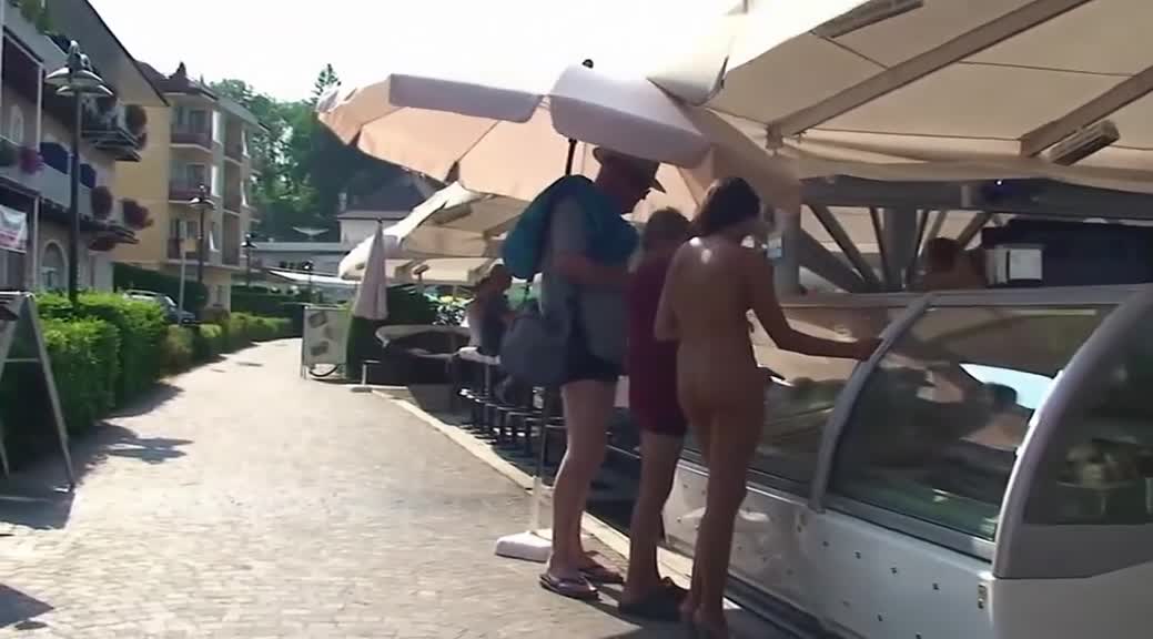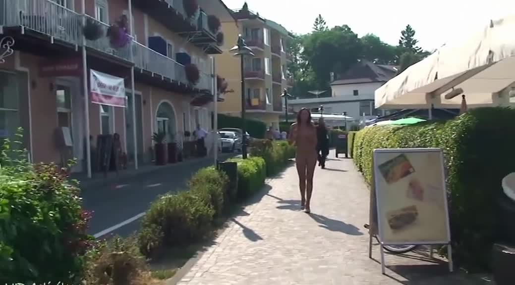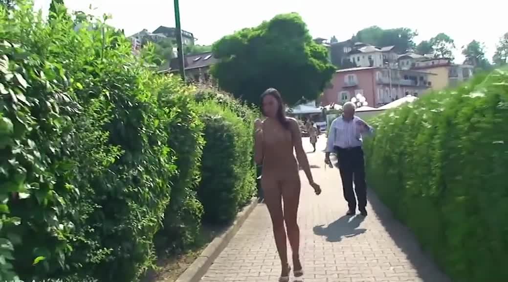 Загорелая красавица продолжила смущать и восхищать прохожих своим стройным, загорелым и полностью обнаженным телом
