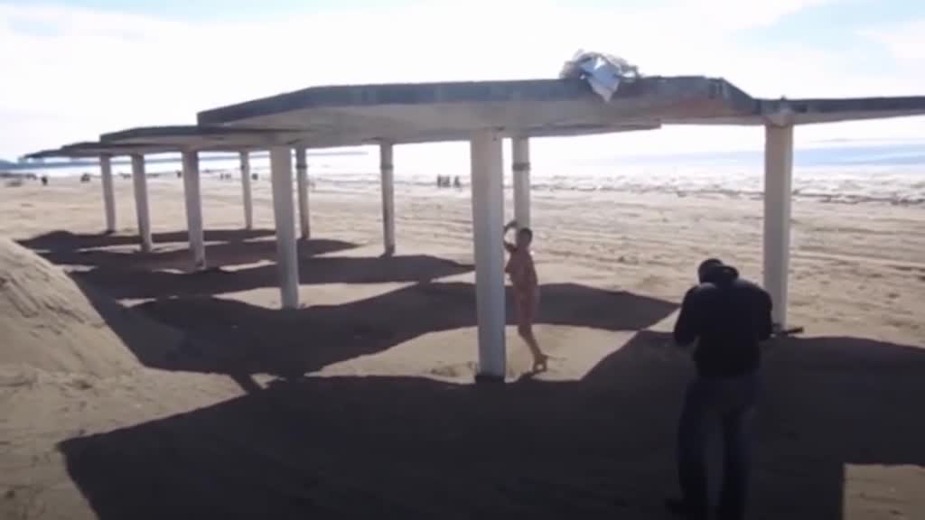 На пляже голая девушка смотрится более привычно чем на улицах оживленного города, но ее прекрасное тело и и очаровательная грудь и тут привлекает пристальное внимание
