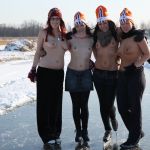 Горячая девка. Смело и жопкой и писькой в снег ныряет!
