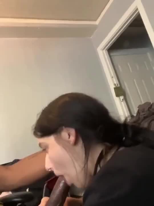 Замужняя сосалочка рада новому члену и с удовольствием его полирует. Мужу остаётся только снимать))