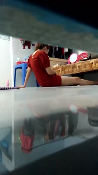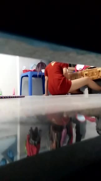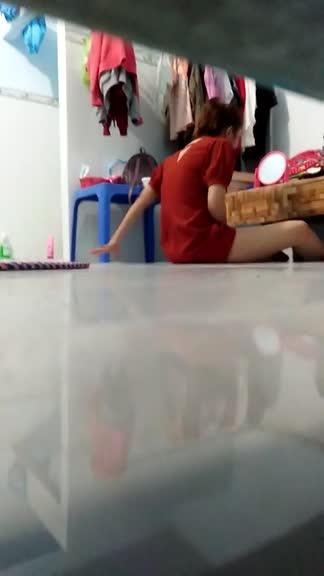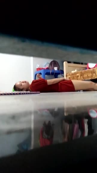 Брат из под двери скрытно снимает как его сестра мастурбирует в комнате,постоянно озираясь на дверь.