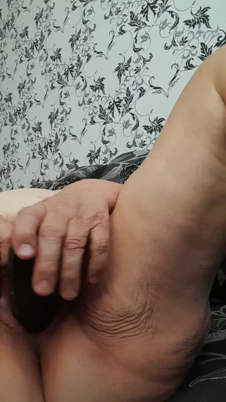 Пышная женщина в возрасте мастурбирует писю большим огурцом!