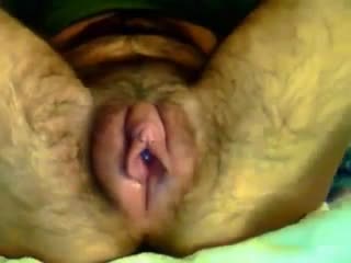 милашка показывает какая у неё заросшая киска с чудным клиторком.